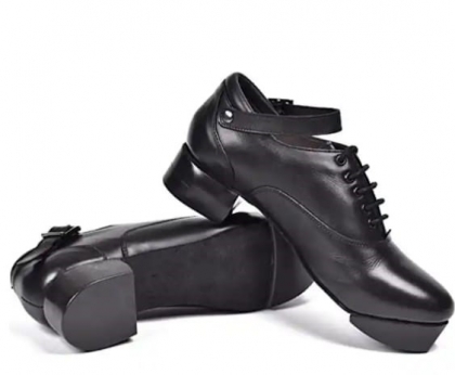 Black Leather Hard Shoes, made by genuine leather with inner synthetic lining and outer fiber heel.
