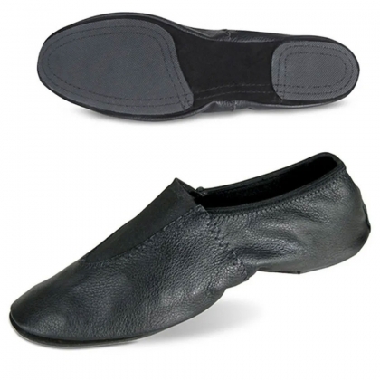 Black Leather Gymnastic Shoes, made by genuine leather and front elastic with inner playboy and foam sole and outer rubber and suede leather sole.