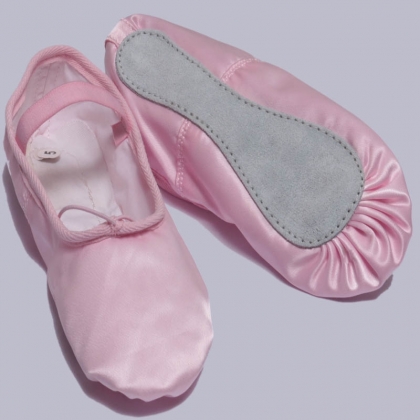 Pink Satin Ballet Shoes, made by satin upper with inner cotton lining and outer full suede leather sole.
