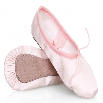 Pink Satin Ballet Shoes, made by satin upper with inner cotton lining and outer full suede leather sole.