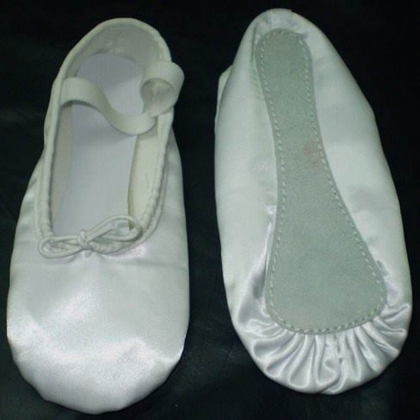 White Satin Ballet Shoes, made by satin upper with inner cotton lining and outer full suede leather sole.