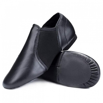 Black Leather Jazz Shoes, made by genuine leather and neoprane with inner synthetic lining and outer rubber sole.